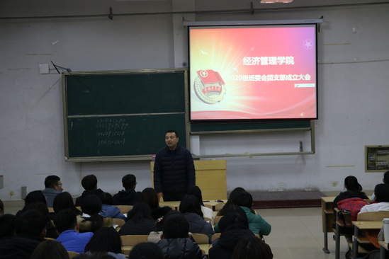 大会在激扬的团歌声中拉开帷幕。会上,郭潇颖老师对新当选的学生干部表示祝贺,并就学生干部的使命与担当、如何做好学生干部以及学生干部如何在工作过程中如何提升自身能力等问题进行了深刻分析与阐述。随后,廉潘红老师对各班团支部、班委会提出工作要求并安排部署了近期工作,他鼓励班团干部不忘竞选初心,加强自我修为,做好学生表率。之后,张智涛老师进行总结发言,他重点强调了奉献精神和责任意识,身为学生干部,要以为同学服务为宗旨,勇担责任使命,同时必须强化学习意识,勤奋学习,全方位提升自己,充实丰富自己的大学生活。会议最后,全体同学起立,进行了庄严肃穆的宣誓。