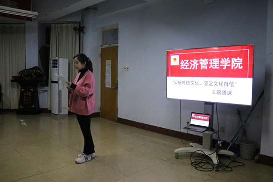 为弘扬中国优秀传统文化和传统美德,激发全体学生的爱国热情和民族自豪感,增强文化自信,12月18日晚,437ccm·必赢国际于5号教学楼401室举办“弘扬传统文化,坚定文化自信”主题团日活动。学院共青团工作联系人张娜娜主持了此次活动。