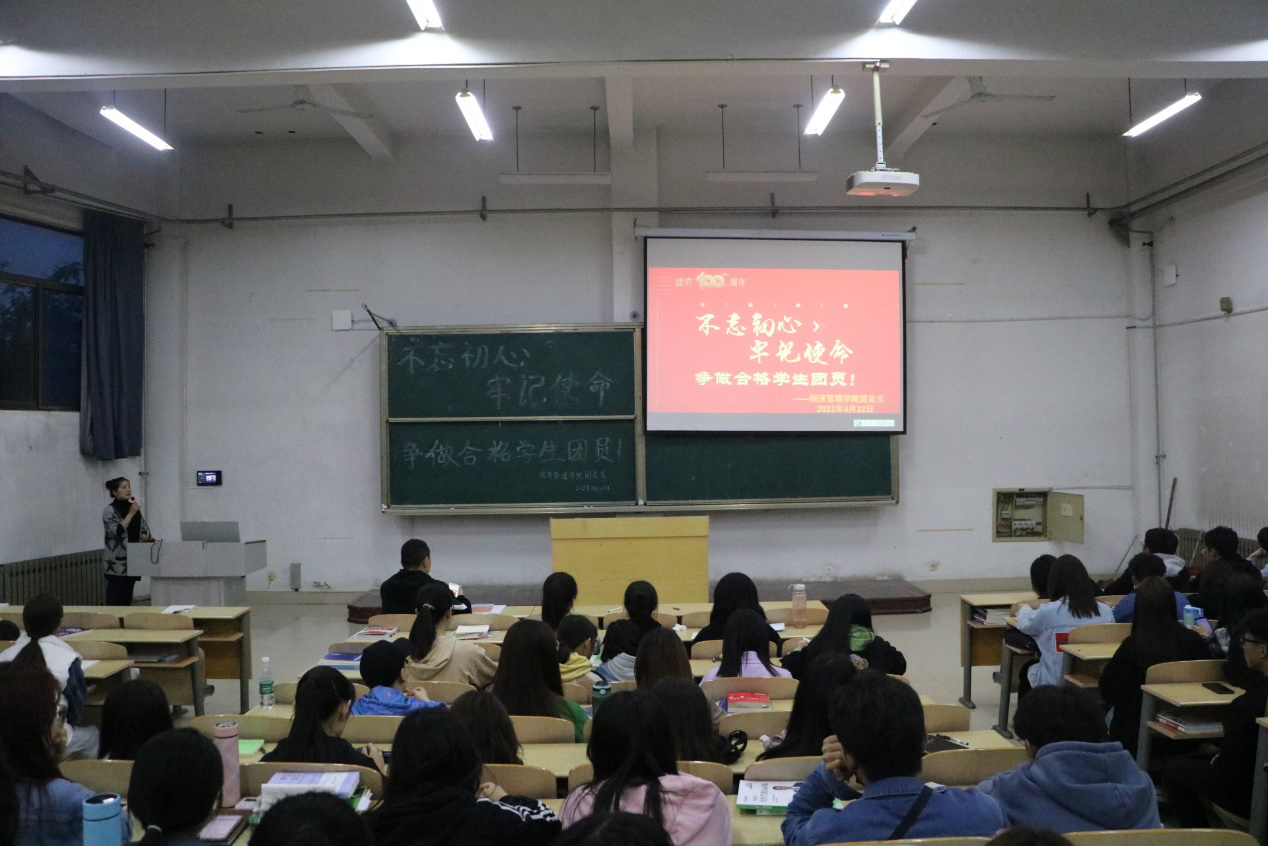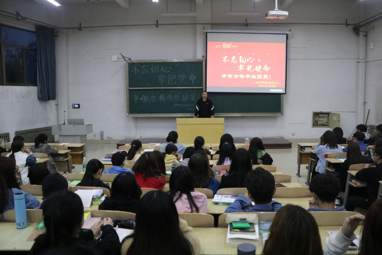 党有号召,团有行动。为进一步深入学习领会习近平总书记在党史学习教育动员大会上的重要讲话精神,助力全院团员青年坚定理想信念,提高团学干部的思想政治素质和工作能力,4月22日晚,437ccm·必赢国际团总支在7教205室举办“不忘初心、牢记使命,争做合格学生团员”主题团课活动。主题团课由团总支书记张智涛老师主讲,我们全体团干部、20级优秀入党积极分子和2021年上半年的60名学生党员发展对象参加了团课学习,本次团课活动由团总支副书记张娜娜主持。