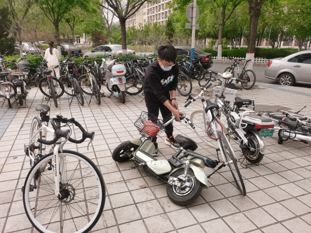 活动中,我们志愿者们分工协作,吃苦耐劳,真正将服务和奉献体现在行动中。在6教与7教之间以及二餐和三餐前后的非机动停车位区域中,学生会成员和参加生产劳动课的同学们将摆放不整齐的自行车统一摆放在指定位置,同时向同学们宣传文明停放自行车理念,劝导未按规定摆放自行车的同学将车辆主动停放在自行车停车区。通过志愿者们的共同努力,原本散乱的车辆井然有序地排列着,这不仅改善了非机动停车位区域中自行车乱停乱放的情况,还加深了同学们对“创建美丽文明校园”的理解。