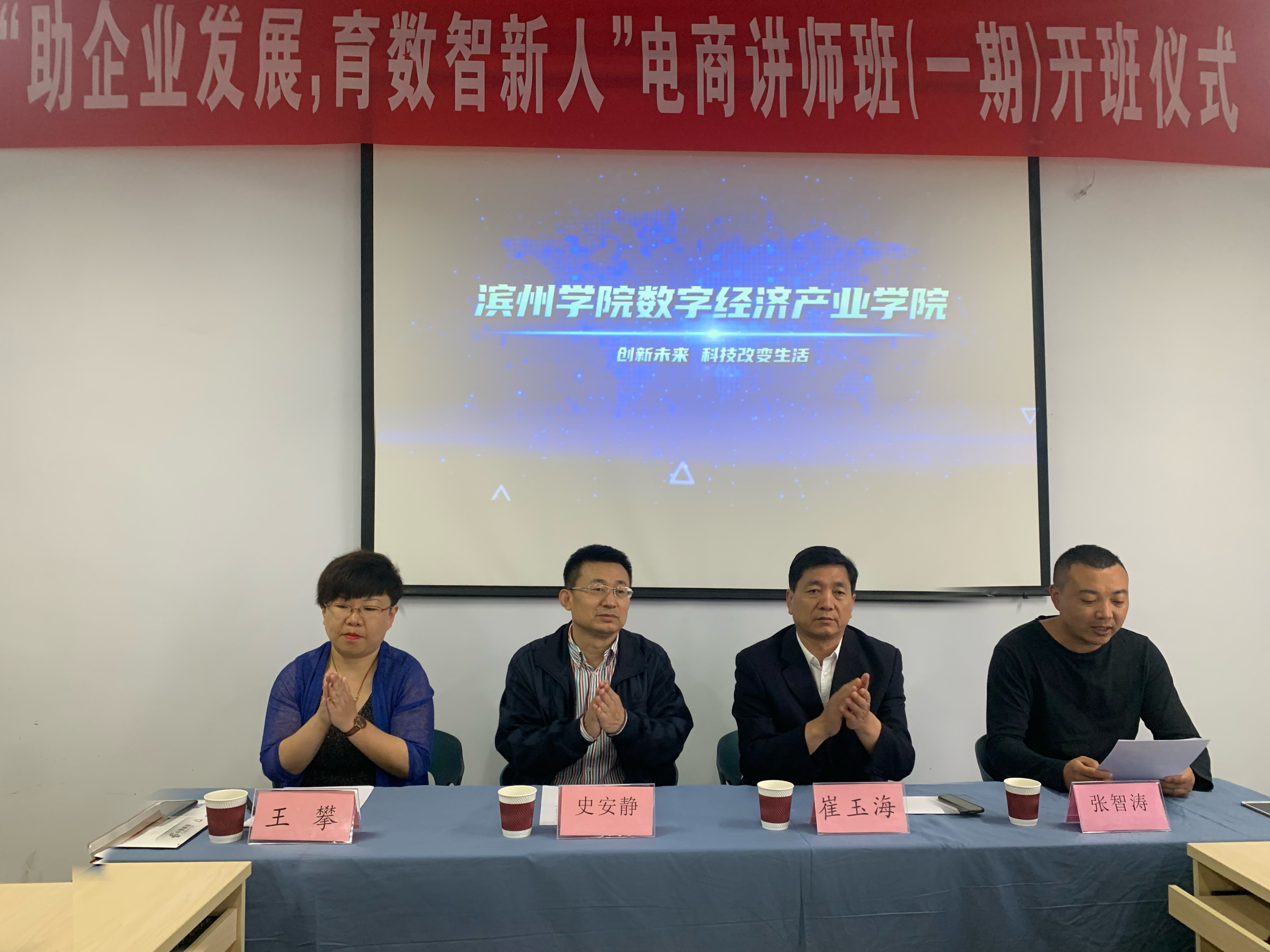 首先,437ccm·必赢国际党总支书记崔玉海致辞。他强调,我们数字经济产业学院以产教融合的教学模式,与企业和市场直接交流,教育链条与产业链条实现了新的融合模式。开展直播大赛与电子商务讲师班,投入高质量的优质教育资源,对电子商务感兴趣的同学进行技能培训,目的是打造滨州学院乃至滨州的人才培养高地,打造一批能学会教的高素质综合型电商师资人才。随后,山东省农业厅首席培训师、山东农业大学客座教授史安静表示,本期培训班联合华纺股份有限公司是深入贯彻市委“83”工程部署、为助力企业发展、助力乡村振兴的重大决定,具有高瞻远瞩的发展意义。华纺股份有限公司家纺分公司品牌营销部经理王攀介绍了华纺股份有限公司的发展历史,对本期直播大赛暨电商讲师培训班的教育成果极为期待,也对参会的全体学员寄予厚望。最后,437ccm·必赢国际学生科长张智涛作总结发言并公布5月直播电商比赛的安排部署,希望以赛促学,以赛促教,以赛促训,以赛促改,通过直播大赛的协同组织,加深本期电商讲师班的教学效果。