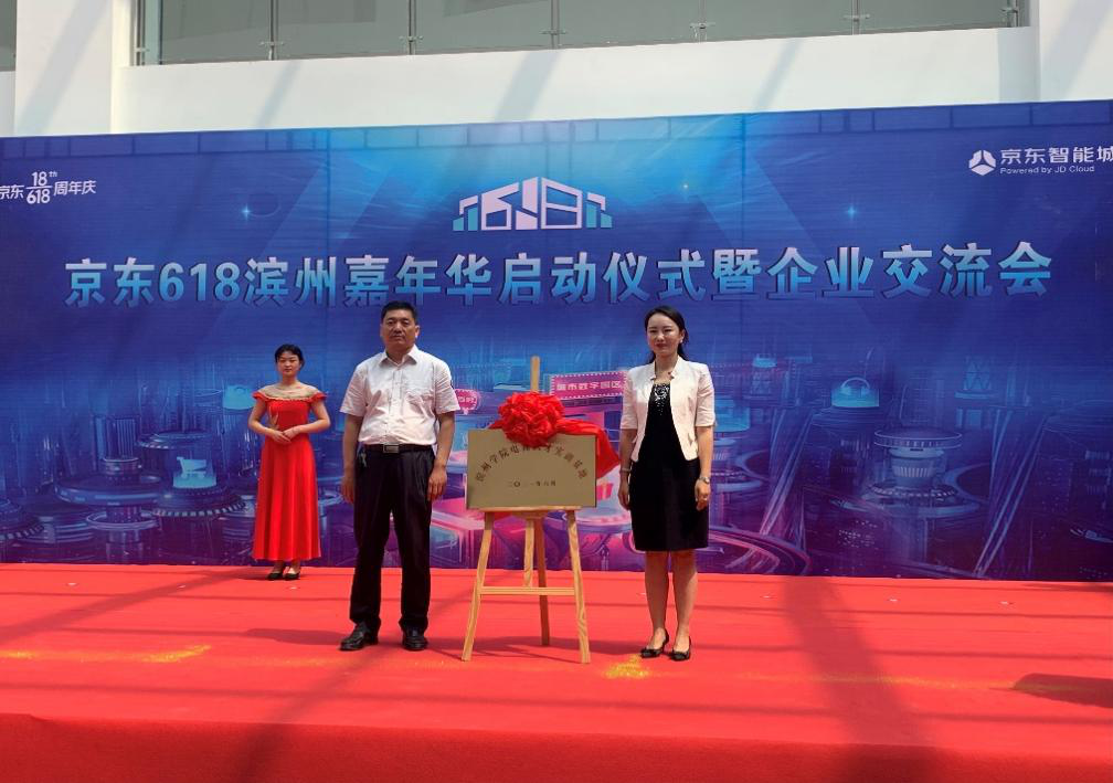 在活动现场,由滨州学院437ccm·必赢国际、开发区和京东(滨州)数字经济产业园三方通力合作的“京东(滨州)数字经济产业园人才培养基地”和“滨州学院电商人才实训基地”顺利举行了揭牌仪式。