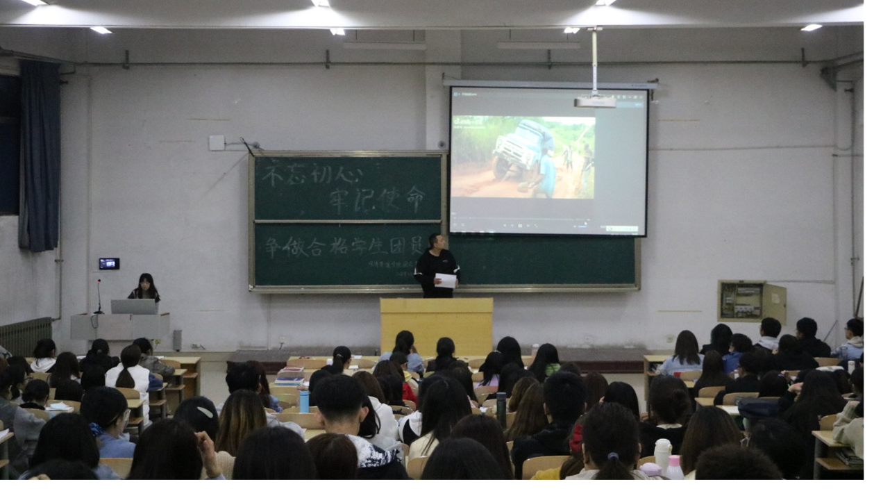 本次主题团日张智涛老师从共青团的使命及性质、新时代青年的新使命和团员青年不忘初心跟党走三个方面进行讲授。张智涛老师通过播放视频、举例及和同学们互动、讨论,让青年团员了解共青团,回顾了从中国共产党创建初期到改革开放各个历史阶段中国共青团所走过的不平凡历程。同时,他号召大家聚焦“共青团的初心”,并要求全体团干部要有坚定的共产主义理想和信念、优秀的品质和道德、品学兼优的素质,要用自己的实际行动去影响和带动其他同学,努力提高自身修养,做一个出彩的共青团员。