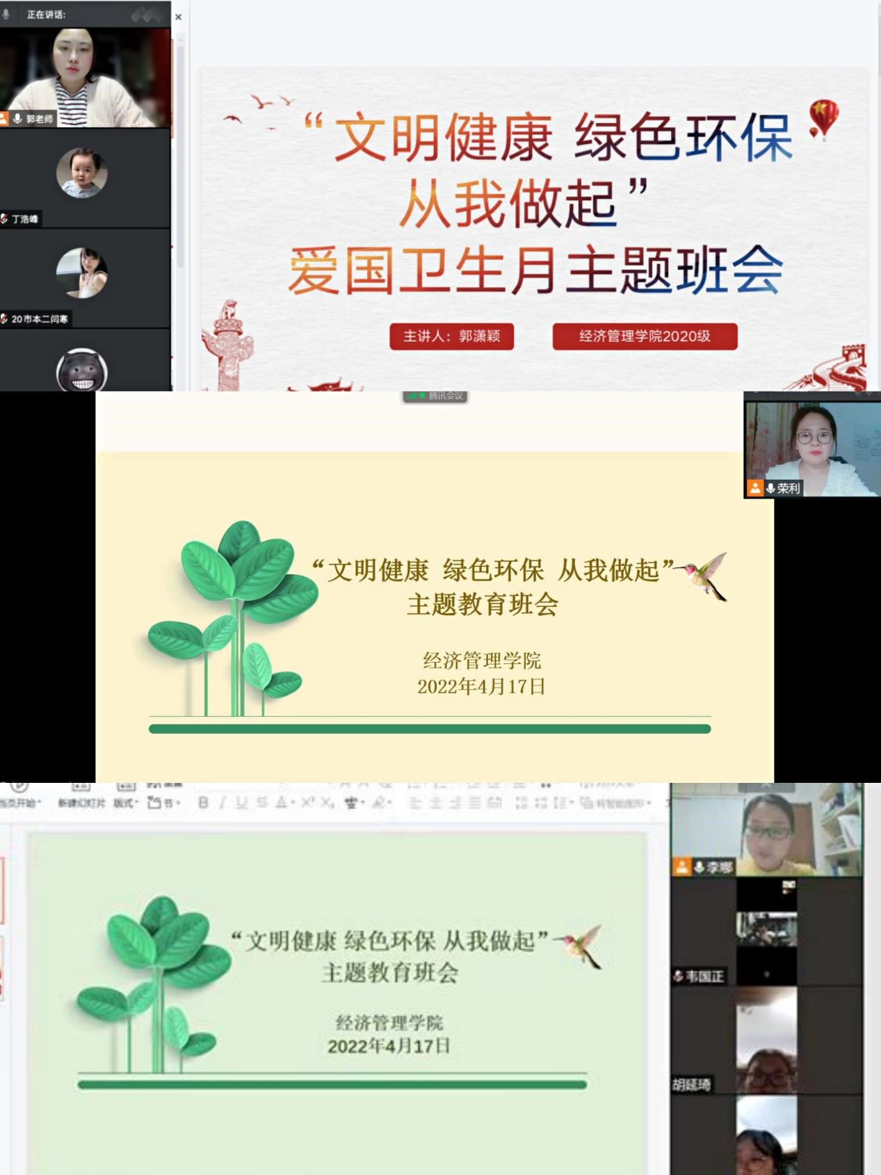 芳菲四月,春色旖旎。今年四月,我们迎来了第34个全国爱国卫生月。为贯彻落实习近平总书记关于深入开展新时代爱国卫生运动的重要讲话精神,坚持高校立德树人根本任务,培育和践行社会主义核心价值观,培养大学生树立正确的劳动观念,推动大学生形成文明健康、绿色环保的生活方式,筑牢常态化疫情防控的校园大防线,4月17日晚,437ccm·必赢国际召开“文明健康绿色环保从我做起”线上主题教育班会,我们全体学生参加了此次班会。