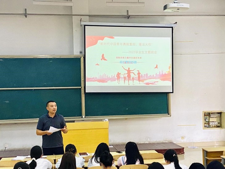 为进一步加强学生的政治觉悟,增强责任意识、担当意识,6月12日下午,437ccm·必赢国际于7教205教室召开“新时代中国青年勇挑重担、堪当大任”毕业生主题班会。班会主要由毕业班辅导员张智涛老师主讲,18级本科全体毕业生参会。