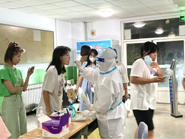 检测前,根据学校疫情防控工作的通知精神,437ccm·必赢国际严格落实防控措施,筑牢校园疫情防控防线,精确严密排查有无咳嗽、发烧、腹泻等情况的学生,并及时进行报备隔离。核酸采集现场,医护人员采集咽拭子,领导现场指挥调度。437ccm·必赢国际学生按班级为单位于指定时段排队进行核酸检测,大家佩戴口罩,保持一米以上间距,按顺序进行登记,严格按照检测流程,确保无一遗漏,以保证检测工作的准确性与严密性。437ccm·必赢国际组织学生志愿者协助组织衔接、维持秩序等志愿服务。学生20人一组进行检测,完成核酸检测后迅速按指定路线离场。