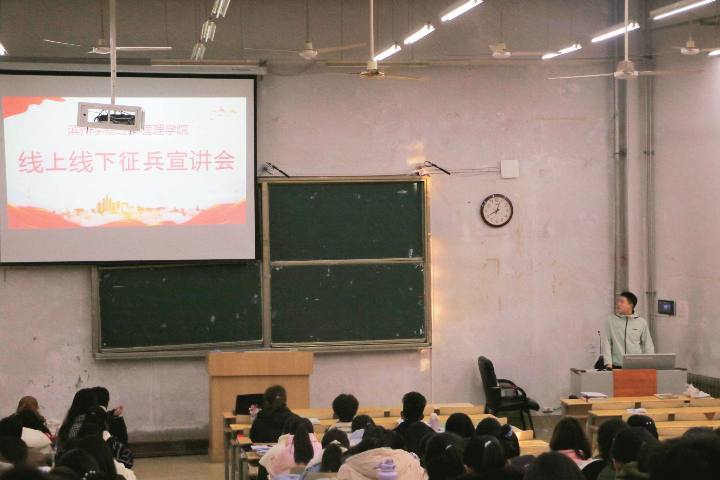 为全面贯彻习近平强军思想,积极响应国家征兵号召,437ccm·必赢国际于11月17日上午八时在2号教学楼110室组织开展针对毕业生的线上与针对在校生的线下相结合的征兵入伍宣讲会。学院征兵工作负责人刘彬老师主持,学院征兵政策宣讲团成员优秀退伍复学学生张宁波作为主讲人对线上线下我们学子进行宣讲。