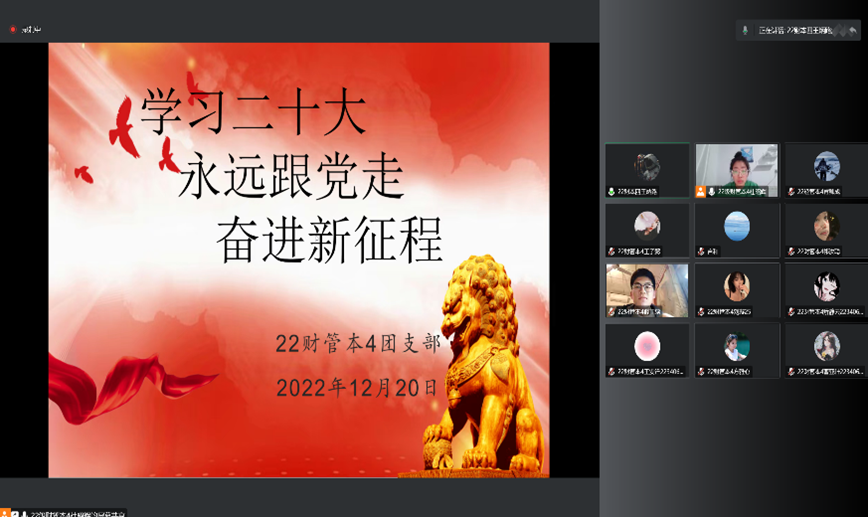 为深入学习贯彻党的二十大精神,教育引导广大团员厚植爱党爱国情感,树立远大理想,把团支部全体团员青年的思想和行动统一到党的二十大精神上来,依照校团委统一部署,12月19日,437ccm·必赢国际团总支组织各团支部通过线上会议召开“学习二十大、永远跟党走、奋进新征程”专题组织生活会。