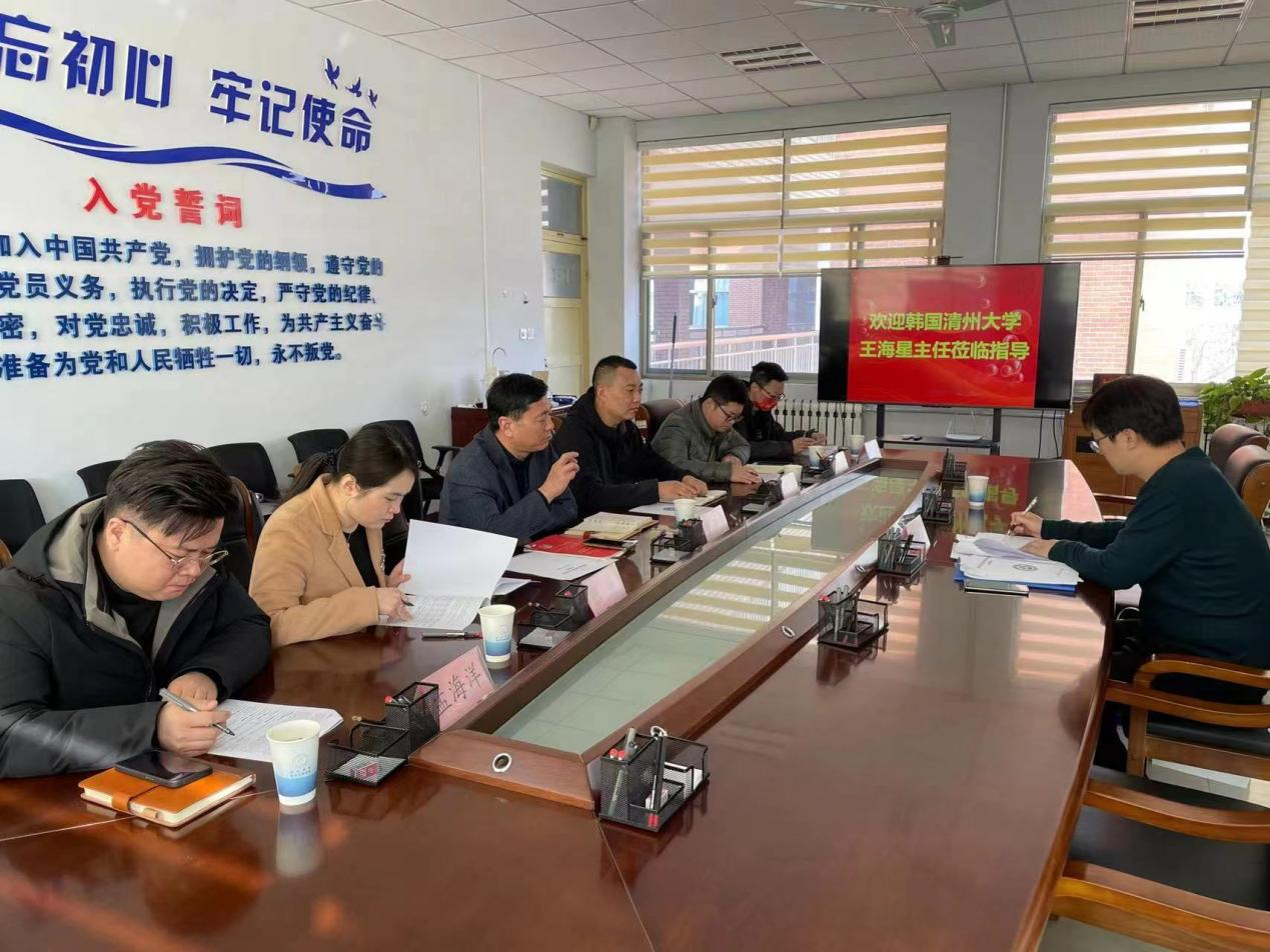 洽谈会上,崔玉海书记首先对王海星主任的到来表示热烈欢迎,并简要介绍了学校历史、发展现状以及学院国际交流与管理教研室的相关情况。随后,王海星主任介绍了清州大学的发展历程和专业设置,并演示了清州大学宣传片。双方同时表达了借助项目进一步加强校际间交流与合作的美好期冀。双方就合作办学项目、学生交换、师资培养、学术交流、学历认证等内容进行了深入讨论与交流,并在“3+1”、“3+1+1.5”、“4+1.5”等项目方面达成初步共识。崔玉海书记指出希望进一步探索两校间学生交流方式,完善学生学历提升项目,培养优秀国际化专业人才,实现优势互补、合作共赢、共同发展的合作目标。
